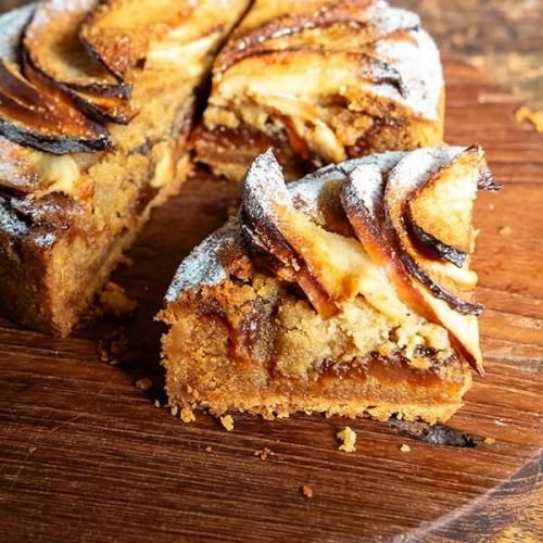 紅玉を何時間もオーブンで煮詰めて綺麗な飴色に仕上げ、シナモンを効かせたキャラメルアーモンドクリームに合わせて焼き上げました。 季節限定のタルトです。